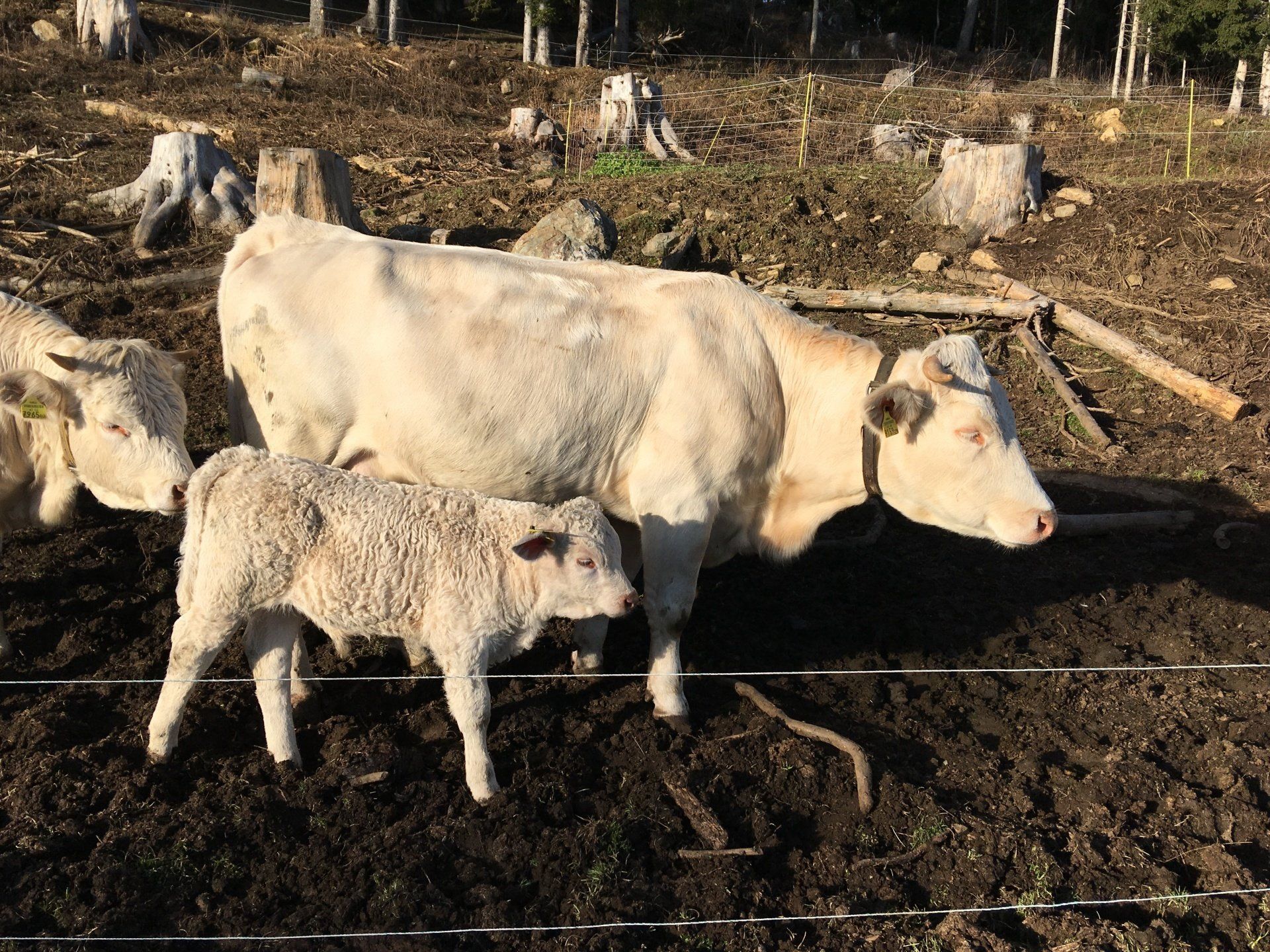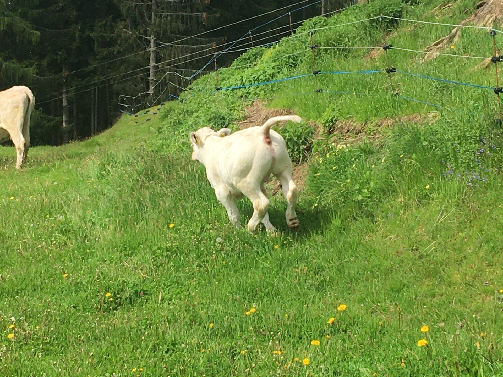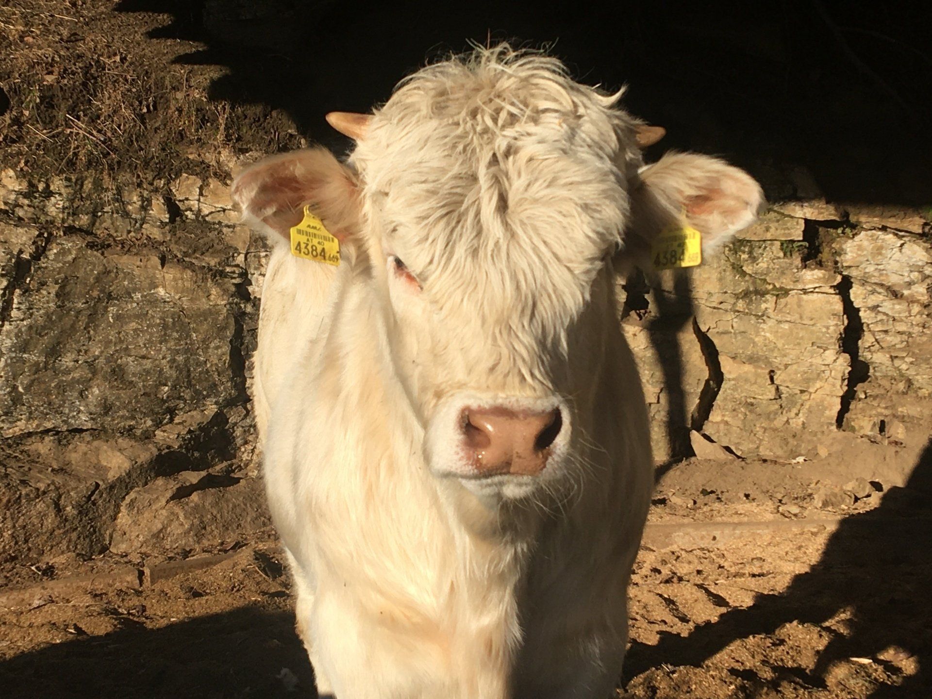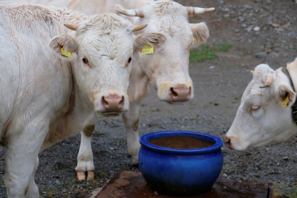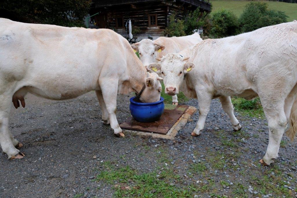 Alle unsere Kärntner Blondvieh Tiere haben Namen, die Kühe heißen Sourrie und Strubbel und die Kälber Schnucki und Claus-Robert.