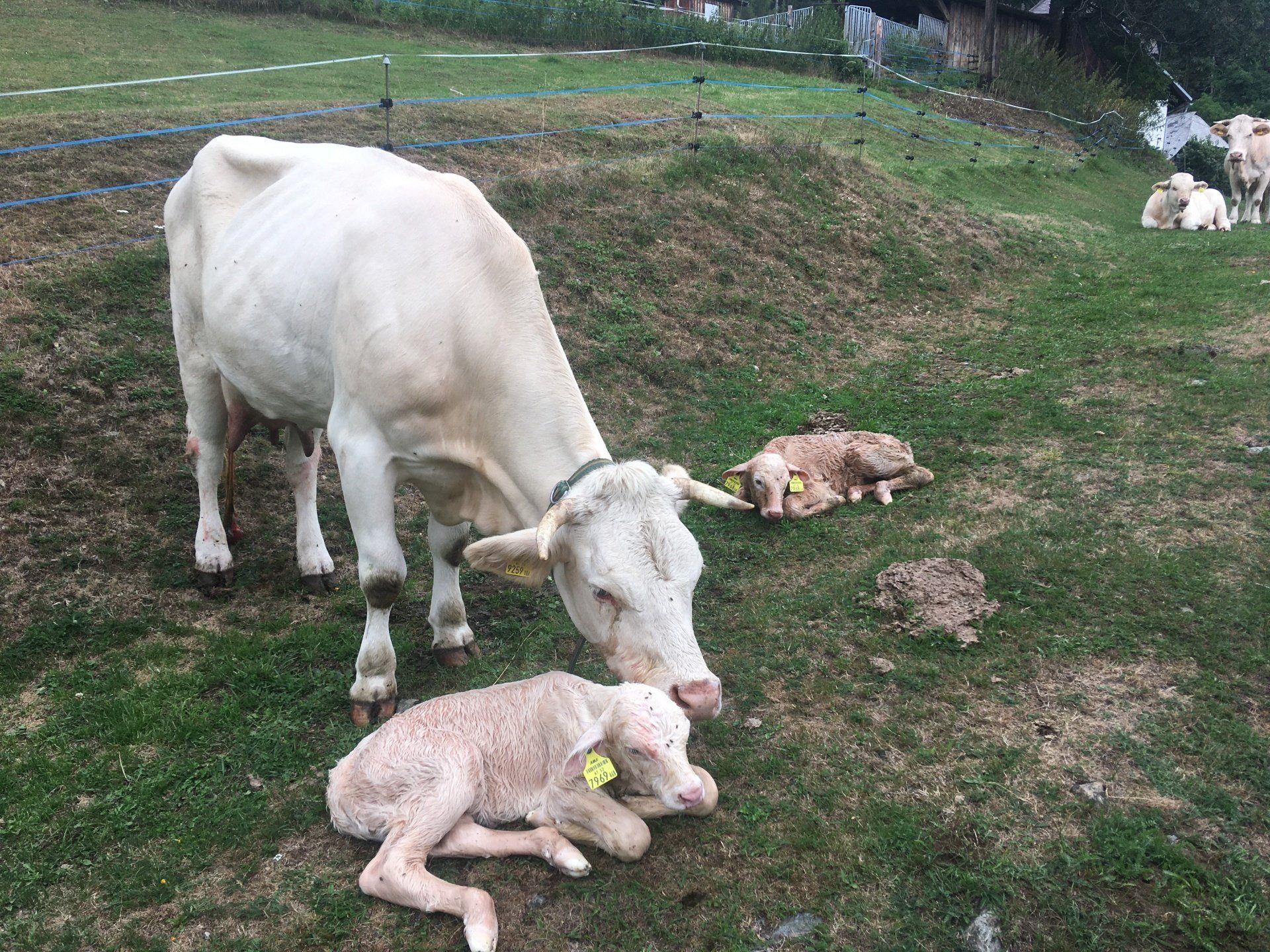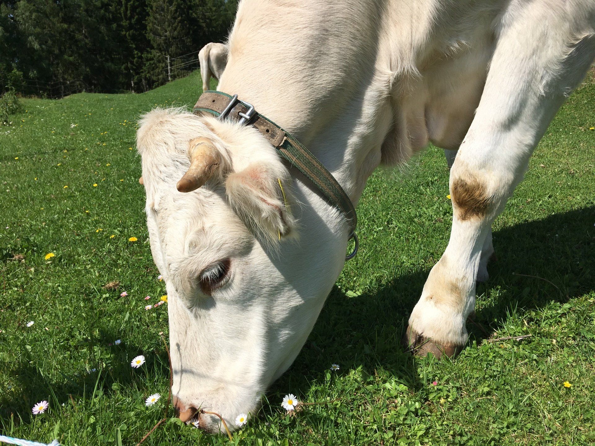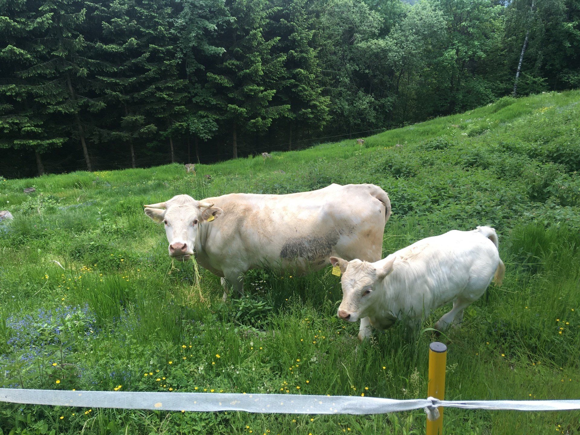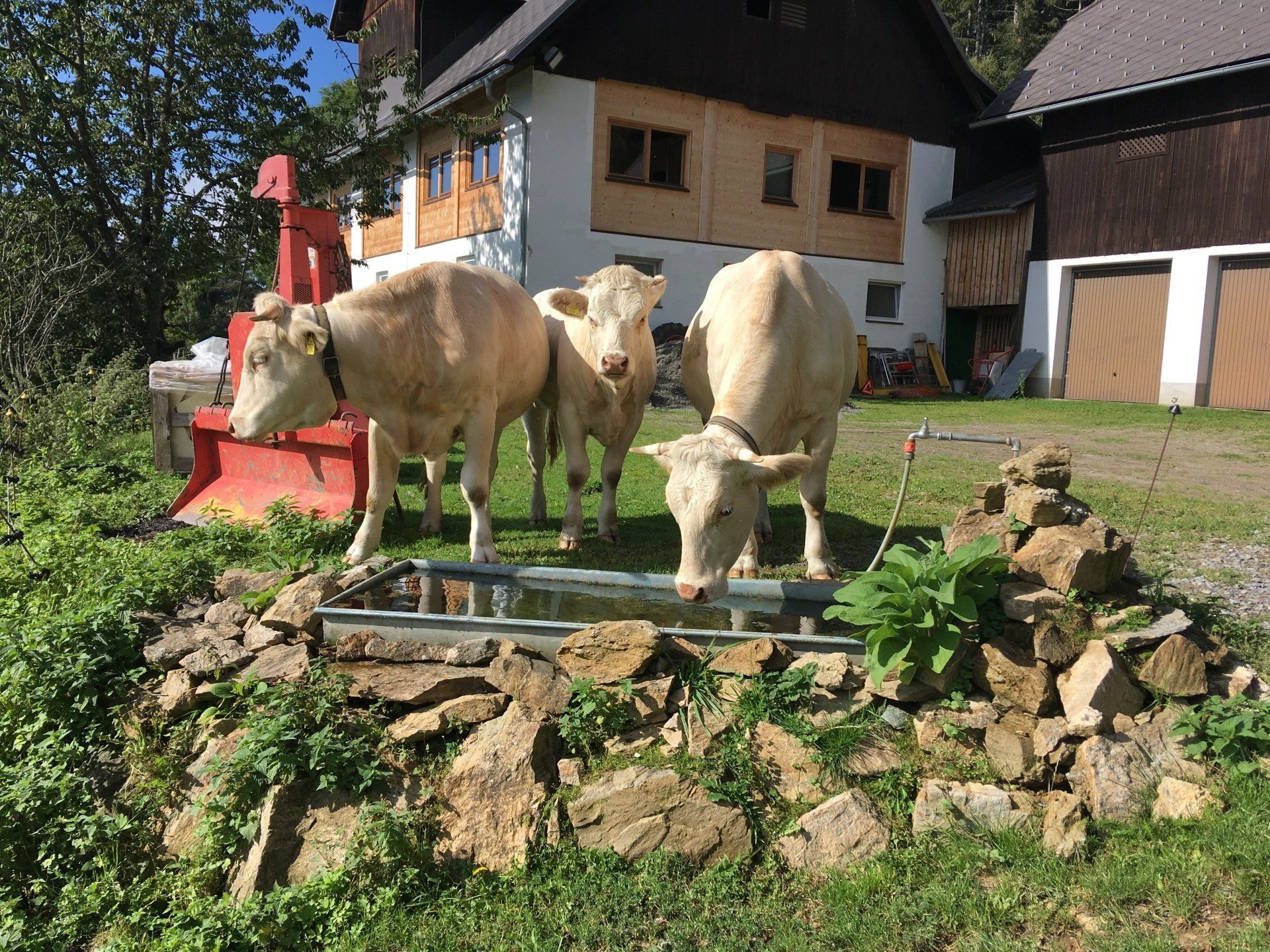 Alle unsere Kärntner Blondvieh Tiere haben Namen, die Kühe heißen Sourrie und Strubbel und die Kälber Schnucki und Claus-Robert.